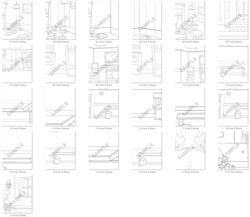 - 26 Black and White AND 26 Colorized Graphics for the "Sophie's Ear Ache" Main Story